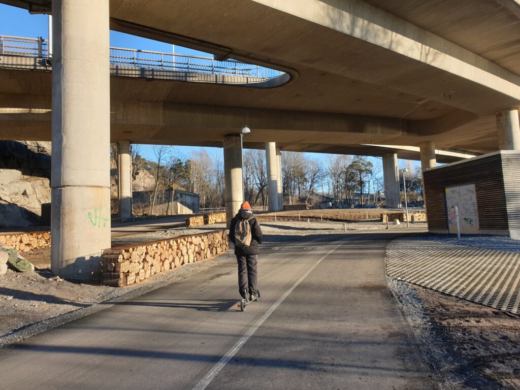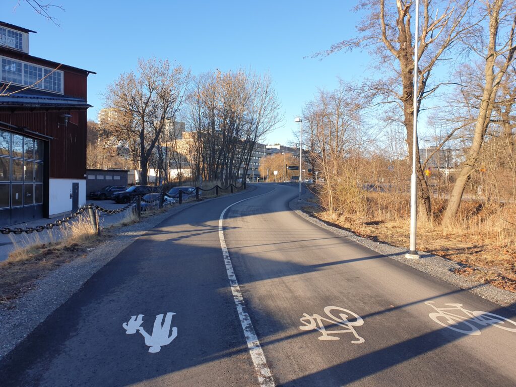 På de 200 metrarna i mitten har stråket fått en ny genare sträckning under bron. Dåvarande gång- och cykelväg hade en ogen sträckning med onödiga höjdskillnader.